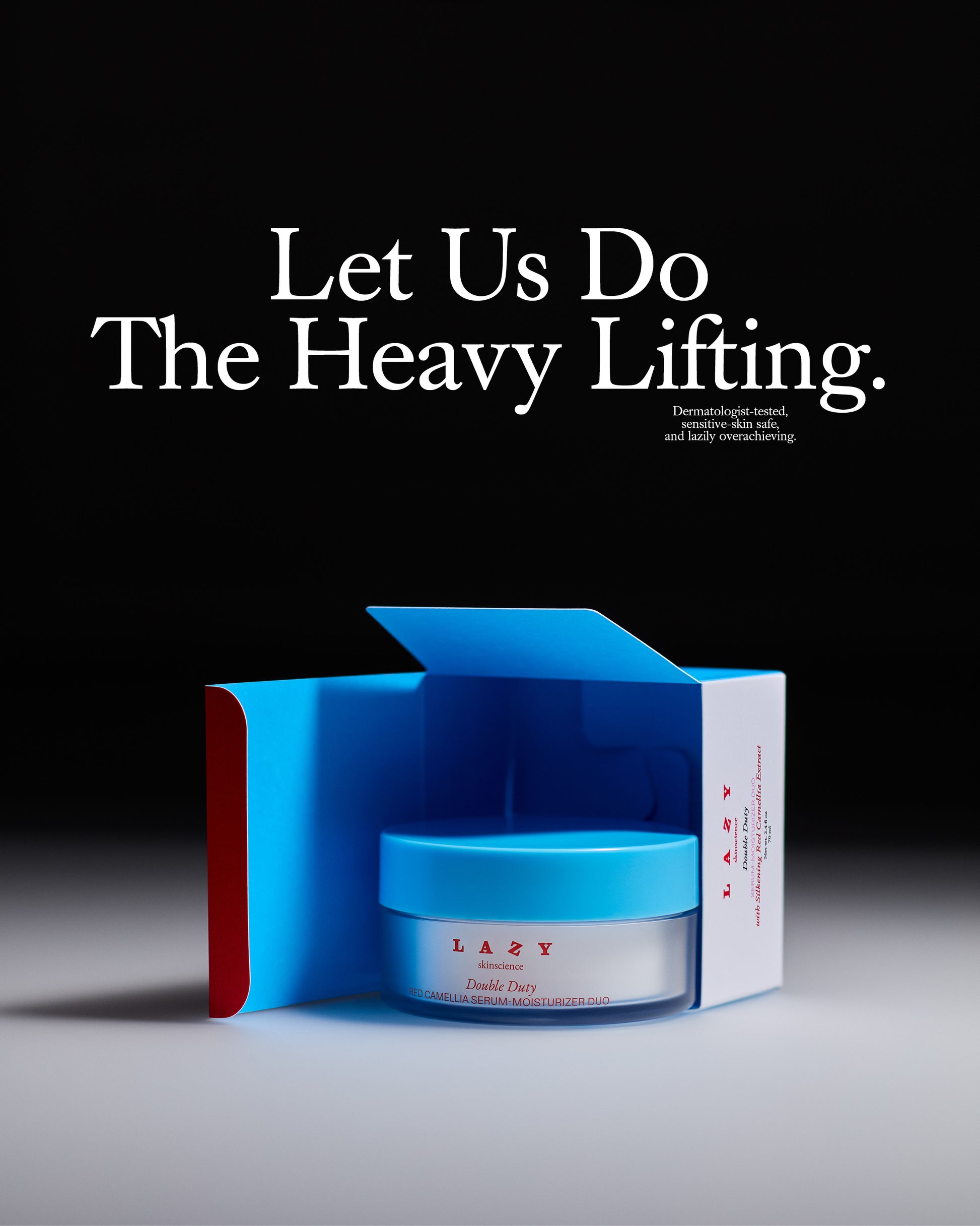 Double Duty is your skin’s all-in-one overachiever. One dose of silkening red camellia serum and one dose of hydrating squalane moisturizer. Powered by red camellia, silver ear mushroom, and peptides to hydrate, brighten, and strengthen in one effortless step. Lightweight yet deeply nourishing. Simple but outperforming. It’s skin smarter, not harder. Stay lazy.
